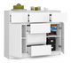 Komoda Kaspar je vyrobena z kvalitní 16 mm laminované desky odolné vůči oděru. Čela zásuvek jsou vyrobena z laminované desky. Zásuvky se pohybují na kovových válečkových vodítkách. Hrany jsou pokryty ABS, zajišťují tak vysokou ochranu proti poškození. Uvnitř dvířek je jedna police.