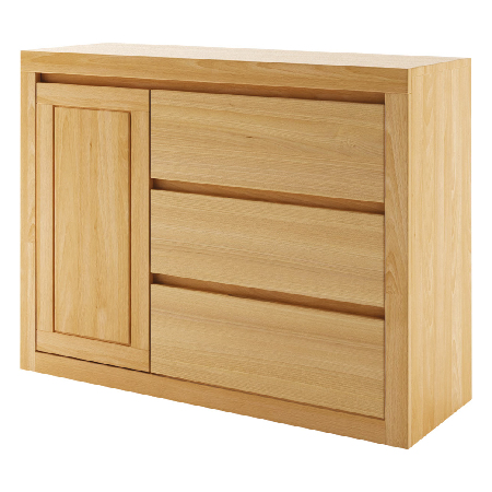 Kvalitní komoda je vyrobena z bukového dřeva. Použitý materiál je 100% přírodní dřevo, které je zárukou pevnosti, ale i dlouhé životnosti. Základní barevné provedení je buk přírodní.