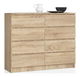 Komody jsou nábytek, který se v poslední době nejčastěji používá v místnostech různých typů – obývacího pokoje, ložnice, kanceláře či jídelny. Komoda Keanu III, kterou Vám s radostí představujeme, je nábytkový díl s 8 prostornými šuplíky, vyrobený z kvalitního materiálu, jakým je laminovaná deska o tloušťce 16 mm. Zásuvky se pohybují na kovových válečkových vodítkách a hrany nábytku jsou pokryty ABS lemováním, které poskytují dobrou ochranu před poškozením. Zajímavá komoda v nadčasových barvách si jistě najde oblibu u náročných zákazníků, které pozitivně překvapí atraktivní cena a mimořádná funkčnost.
