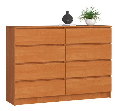 Komody jsou nábytek, který se v poslední době nejčastěji používá v místnostech různých typů – obývacího pokoje, ložnice, kanceláře či jídelny. Komoda Keanu III, kterou Vám s radostí představujeme, je nábytkový díl s 8 prostornými šuplíky, vyrobený z kvalitního materiálu, jakým je laminovaná deska o tloušťce 16 mm. Zásuvky se pohybují na kovových válečkových vodítkách a hrany nábytku jsou pokryty ABS lemováním, které poskytují dobrou ochranu před poškozením. Zajímavá komoda v nadčasových barvách si jistě najde oblibu u náročných zákazníků, které pozitivně překvapí atraktivní cena a mimořádná funkčnost.