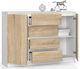 ZobrazitKomody jsou nábytek, který se v poslední době nejčastěji používá v místnostech různých typů – obývacího pokoje, ložnice, kanceláře či jídelny. Komoda Keanu IV, kterou Vám s radostí představujeme, je nábytkový díl se 4 prostornými zásuvkami a 2 dvířky, vyrobený z kvalitního materiálu, jakým je laminovaná deska o tloušťce 16 mm. Zásuvky se pohybují na kovových válečkových vodítkách a hrany nábytku jsou pokryty ABS lemováním, které poskytují dobrou ochranu před poškozením. Zajímavá komoda v nadčasových barvách si jistě najde oblibu u náročných zákazníků, které pozitivně překvapí atraktivní cena a mimořádná funkčnost.