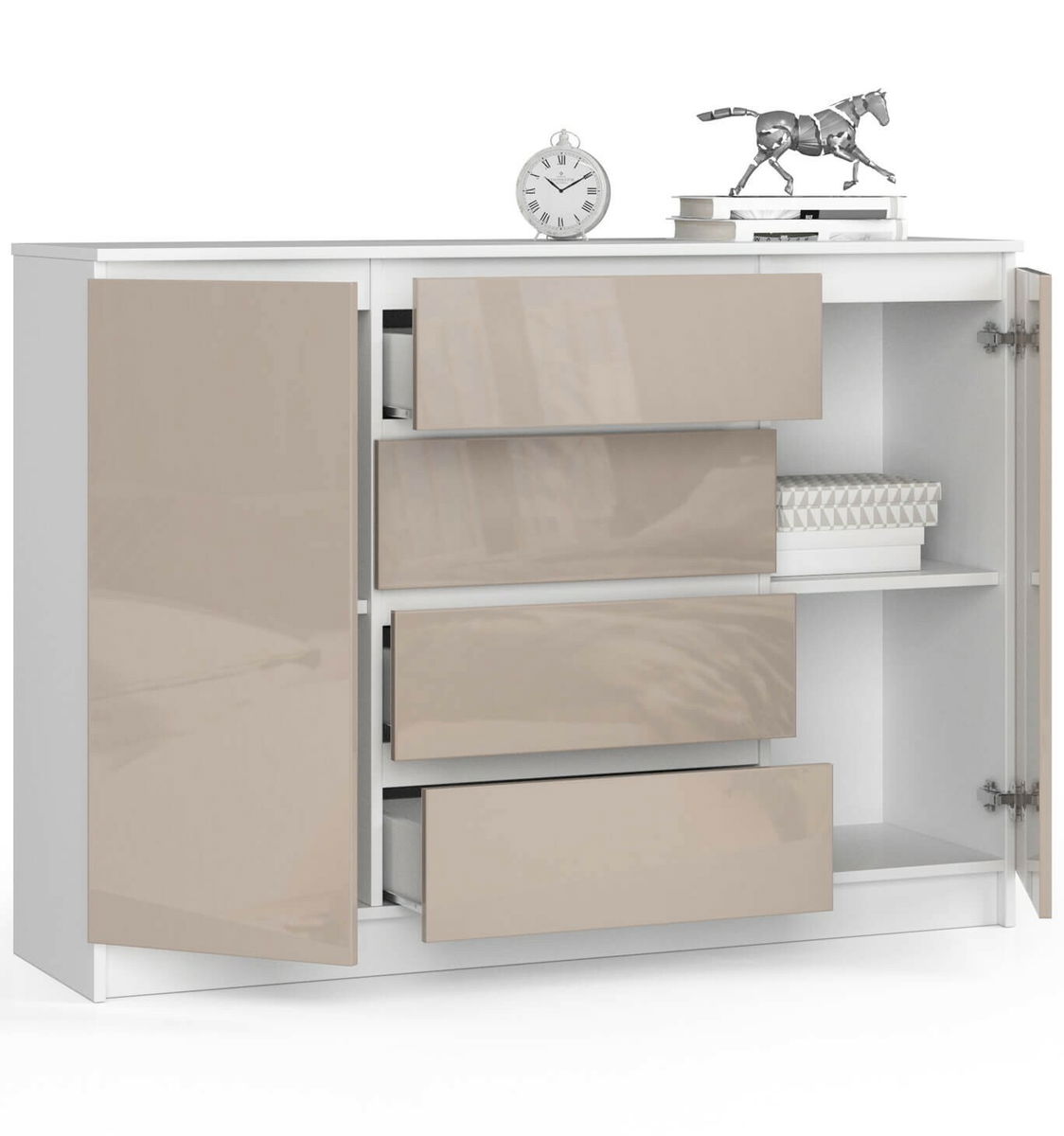 ZobrazitKomody jsou nábytek, který se v poslední době nejčastěji používá v místnostech různých typů – obývacího pokoje, ložnice, kanceláře či jídelny. Komoda Keanu IV, kterou Vám s radostí představujeme, je nábytkový díl se 4 prostornými zásuvkami a 2 dvířky, vyrobený z kvalitního materiálu, jakým je laminovaná deska o tloušťce 16 mm. Zásuvky se pohybují na kovových válečkových vodítkách a hrany nábytku jsou pokryty ABS lemováním, které poskytují dobrou ochranu před poškozením. Zajímavá komoda v nadčasových barvách si jistě najde oblibu u náročných zákazníků, které pozitivně překvapí atraktivní cena a mimořádná funkčnost.