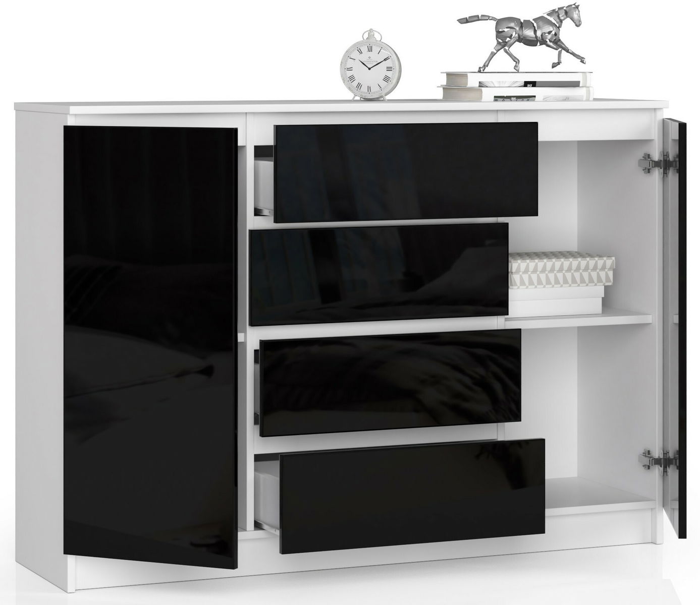 ZobrazitKomody jsou nábytek, který se v poslední době nejčastěji používá v místnostech různých typů – obývacího pokoje, ložnice, kanceláře či jídelny. Komoda Keanu IV, kterou Vám s radostí představujeme, je nábytkový díl se 4 prostornými zásuvkami a 2 dvířky, vyrobený z kvalitního materiálu, jakým je laminovaná deska o tloušťce 16 mm. Zásuvky se pohybují na kovových válečkových vodítkách a hrany nábytku jsou pokryty ABS lemováním, které poskytují dobrou ochranu před poškozením. Zajímavá komoda v nadčasových barvách si jistě najde oblibu u náročných zákazníků, které pozitivně překvapí atraktivní cena a mimořádná funkčnost.