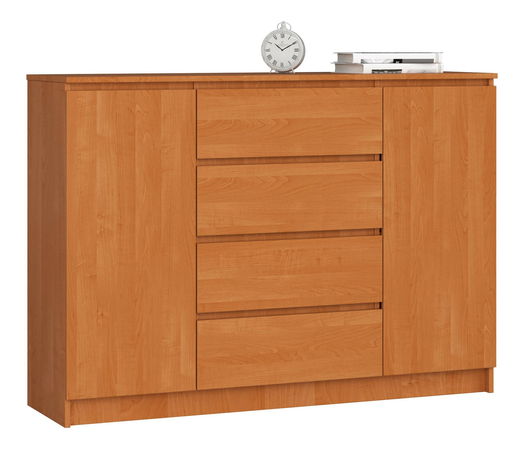 ZobrazitKomody jsou nábytek, který se v poslední době nejčastěji používá v místnostech různých typů – obývacího pokoje, ložnice, kanceláře či jídelny. Komoda Keanu IV, kterou Vám s radostí představujeme, je nábytkový díl se 4 prostornými zásuvkami a 2 dvířky, vyrobený z kvalitního materiálu, jakým je laminovaná deska o tloušťce 16 mm. Zásuvky se pohybují na kovových válečkových vodítkách a hrany nábytku jsou pokryty ABS lemováním, které poskytují dobrou ochranu před poškozením. Zajímavá komoda v nadčasových barvách si jistě najde oblibu u náročných zákazníků, které pozitivně překvapí atraktivní cena a mimořádná funkčnost.