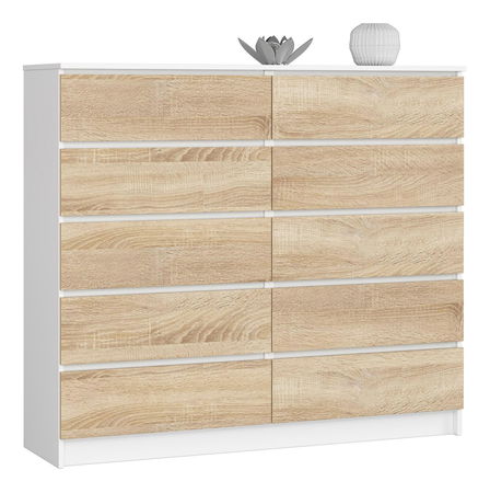 Komoda Keanu V (bílá + dub sonoma)