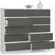 Komody jsou nábytek, který se v poslední době nejčastěji používá v místnostech různých typů – obývacího pokoje, ložnice, kanceláře či jídelny. Komoda Keanu V, kterou Vám s radostí představujeme, je nábytkový díl až s 10 prostornými šuplíky, vyrobený z kvalitního materiálu, jakým je laminovaná deska o tloušťce 16 mm. Zásuvky se pohybují na kovových válečkových vodítkách a hrany nábytku jsou pokryty ABS lemováním, které poskytují dobrou ochranu před poškozením. Zajímavá komoda v nadčasových barvách si jistě najde oblibu u náročných zákazníků, které pozitivně překvapí atraktivní cena a mimořádná funkčnost.