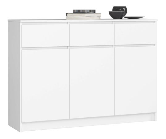 Komody jsou nábytek, který se v poslední době nejčastěji používá v místnostech různých typů – obývacího pokoje, ložnice, kanceláře či jídelny. Komoda Keanu VI, kterou Vám s radostí představujeme, je nábytkový díl se 3 prostornými zásuvkami a 3 dvířky, vyrobený z kvalitního materiálu, jakým je laminovaná deska o tloušťce 16 mm. Zásuvky se pohybují na kovových válečkových vodítkách a hrany nábytku jsou pokryty ABS lemováním, které poskytují dobrou ochranu před poškozením. Zajímavá komoda v nadčasových barvách si jistě najde oblibu u náročných zákazníků, které pozitivně překvapí atraktivní cena a mimořádná funkčnost.