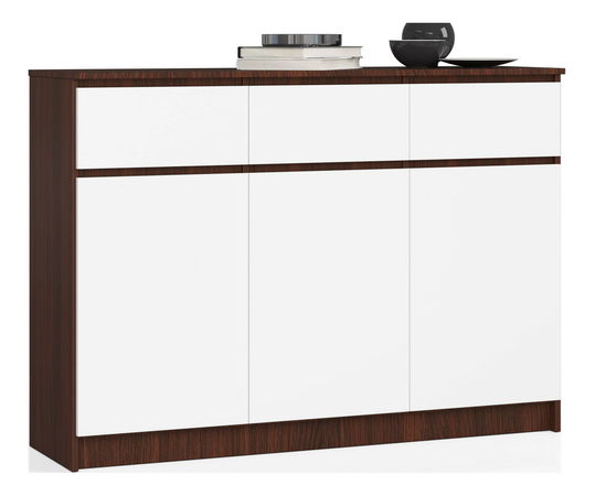 ZobrazitKomody jsou nábytek, který se v poslední době nejčastěji používá v místnostech různých typů – obývacího pokoje, ložnice, kanceláře či jídelny. Komoda Keanu VI, kterou Vám s radostí představujeme, je nábytkový díl se 3 prostornými zásuvkami a 3 dvířky, vyrobený z kvalitního materiálu, jakým je laminovaná deska o tloušťce 16 mm. Zásuvky se pohybují na kovových válečkových vodítkách a hrany nábytku jsou pokryty ABS lemováním, které poskytují dobrou ochranu před poškozením. Zajímavá komoda v nadčasových barvách si jistě najde oblibu u náročných zákazníků, které pozitivně překvapí atraktivní cena a mimořádná funkčnost.