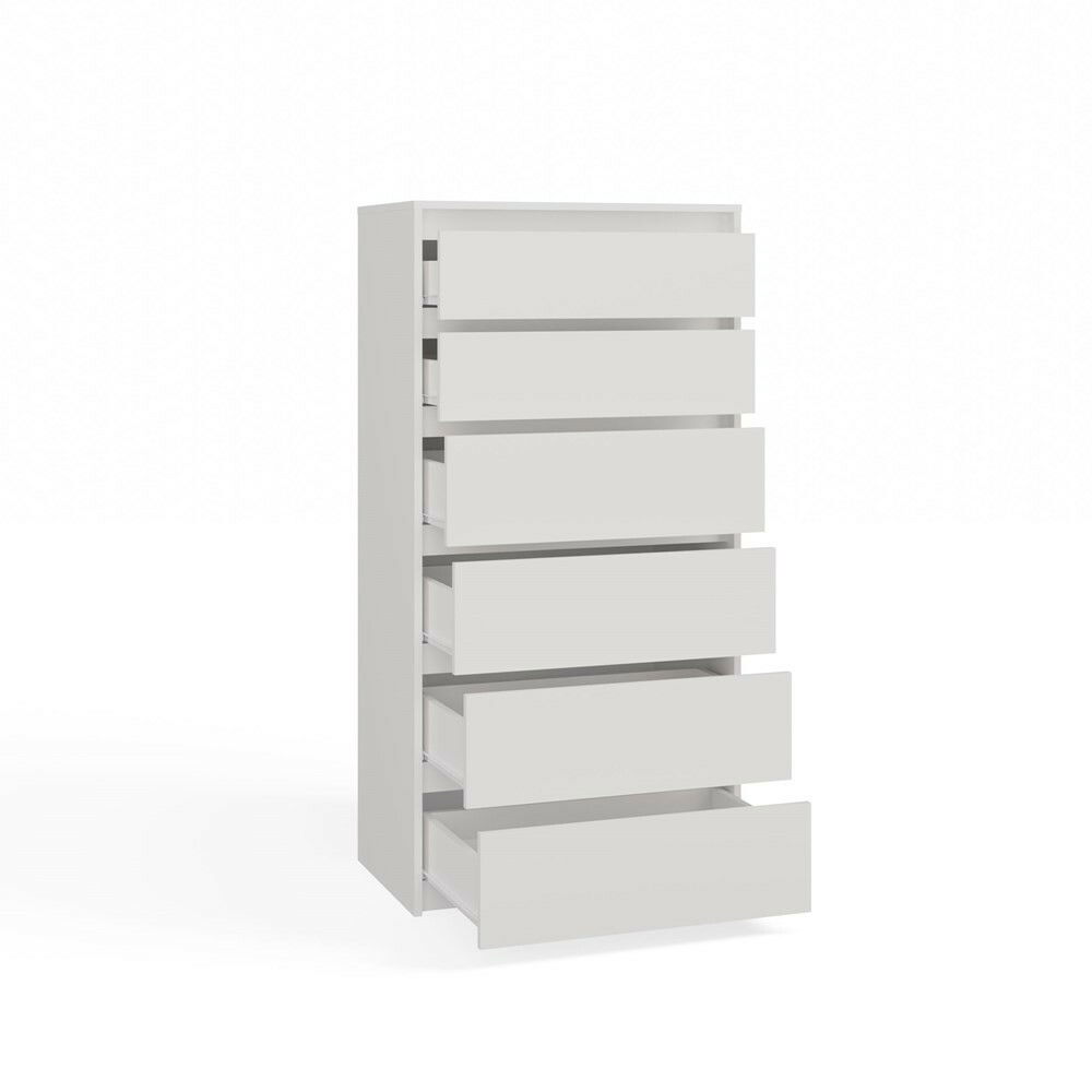 ZobrazitKomoda Kentero 2 v elegantní bílé barvě je ideálním řešením pro moderní interiéry, kde se potýká funkčnost s minimalistickým designem. S rozměry 70 cm na šířku a 139 cm na výšku nabízí dostatek úložného prostoru v šesti prostorných zásuvkách, které jsou vybaveny kvalitními válečkovými vodítky pro pohodlné a bezpečné používání. Bezúchytové fronty přispívají k jejímu modernímu vzhledu, zatímco odolné materiály, jako laminovaná dřevotříska a ABS hrany, zaručují dlouhou životnost. Tento kus nábytku skvěle doplní vaši ložnici, obývací pokoj nebo dětský pokoj.