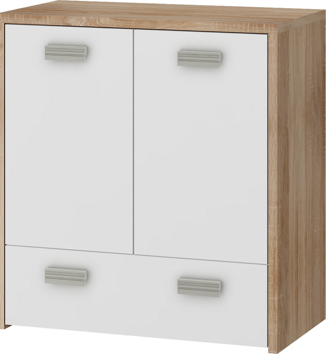 Komoda Kimi KIT 03 o výšce 86 cm a hloubce 45 cm v odstínu Dub Sonoma světlá + Bílá je ideálním doplňkem vašeho interiéru. Tato moderní komoda disponuje dostatkem úložného prostoru, který vám pomůže udržet vaše věci uspořádané a na dosah. Výroba tohoto kusu nábytku byla pečlivě promyšlena a zajišťuje dlouhou životnost a trvanlivost. Díky svému provedení v odstínu Dub Sonoma světlá + Bílá, tato komoda skvěle padne do každého moderního interiéru. Komoda Kimi KIT 03 bude jistě skvělou volbou pro ty, kteří hledají stylový a praktický nábytek do svého obývacího prostoru nebo ložnice.