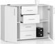 Komoda Kiran, kterou Vám s radostí představujeme, je nábytkový díl se 4 prostornými šuplíky a 2 dvířky, vyrobený z kvalitního materiálu, jakým je laminovaná deska o tloušťce 16 mm. Zásuvky se pohybují na kovových válečkových vodítkách a hrany nábytku jsou pokryty ABS lemováním, které poskytují dobrou ochranu před poškozením. Úchytky komody Kiran jsou stříbrné barvy. Zajímavá komoda v nadčasových barvách si jistě najde oblibu u všech zákazníků, které pozitivně překvapí atraktivní cena a mimořádná funkčnost.