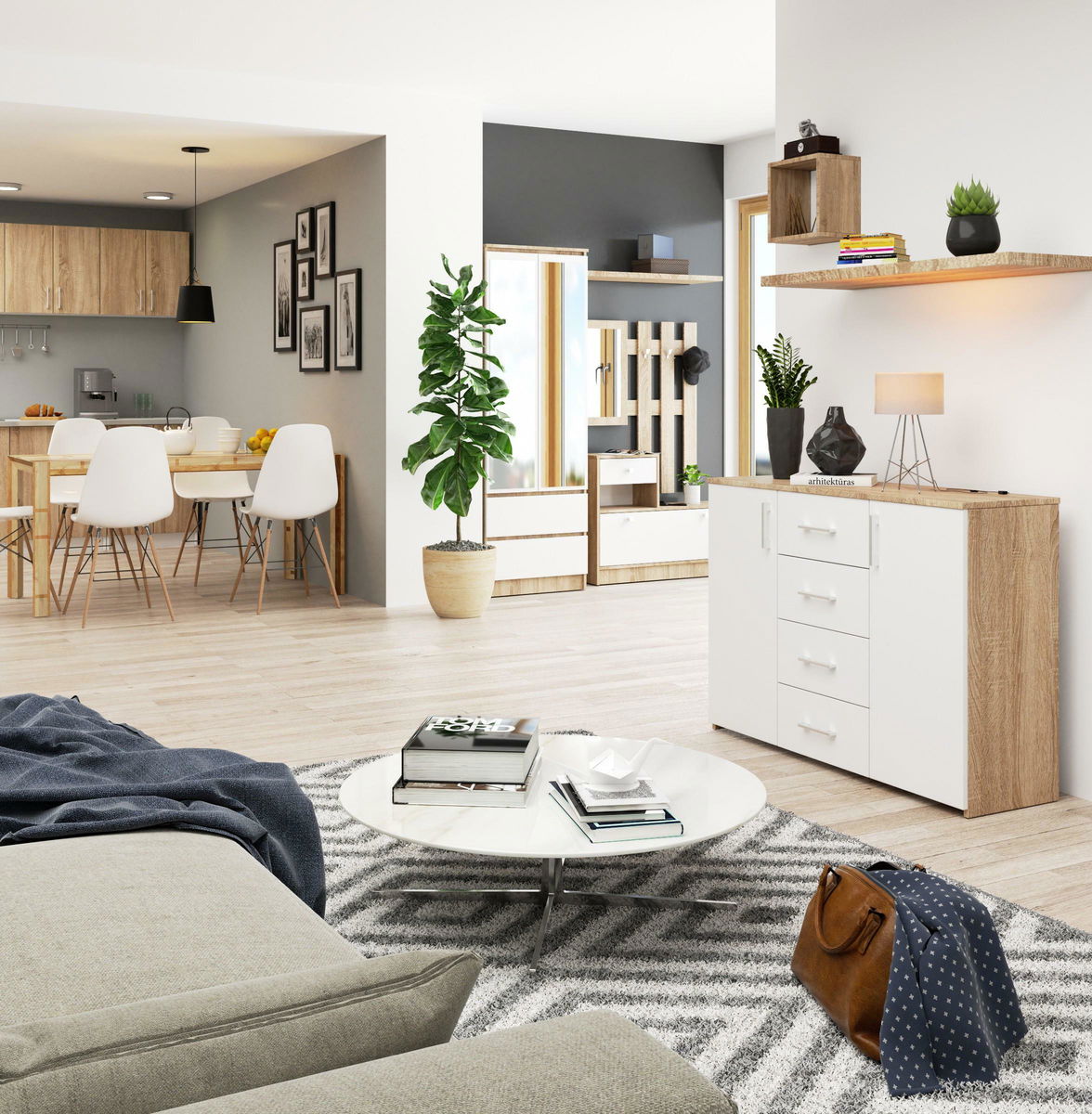 Komoda Kiran (dub sonoma + bílá)