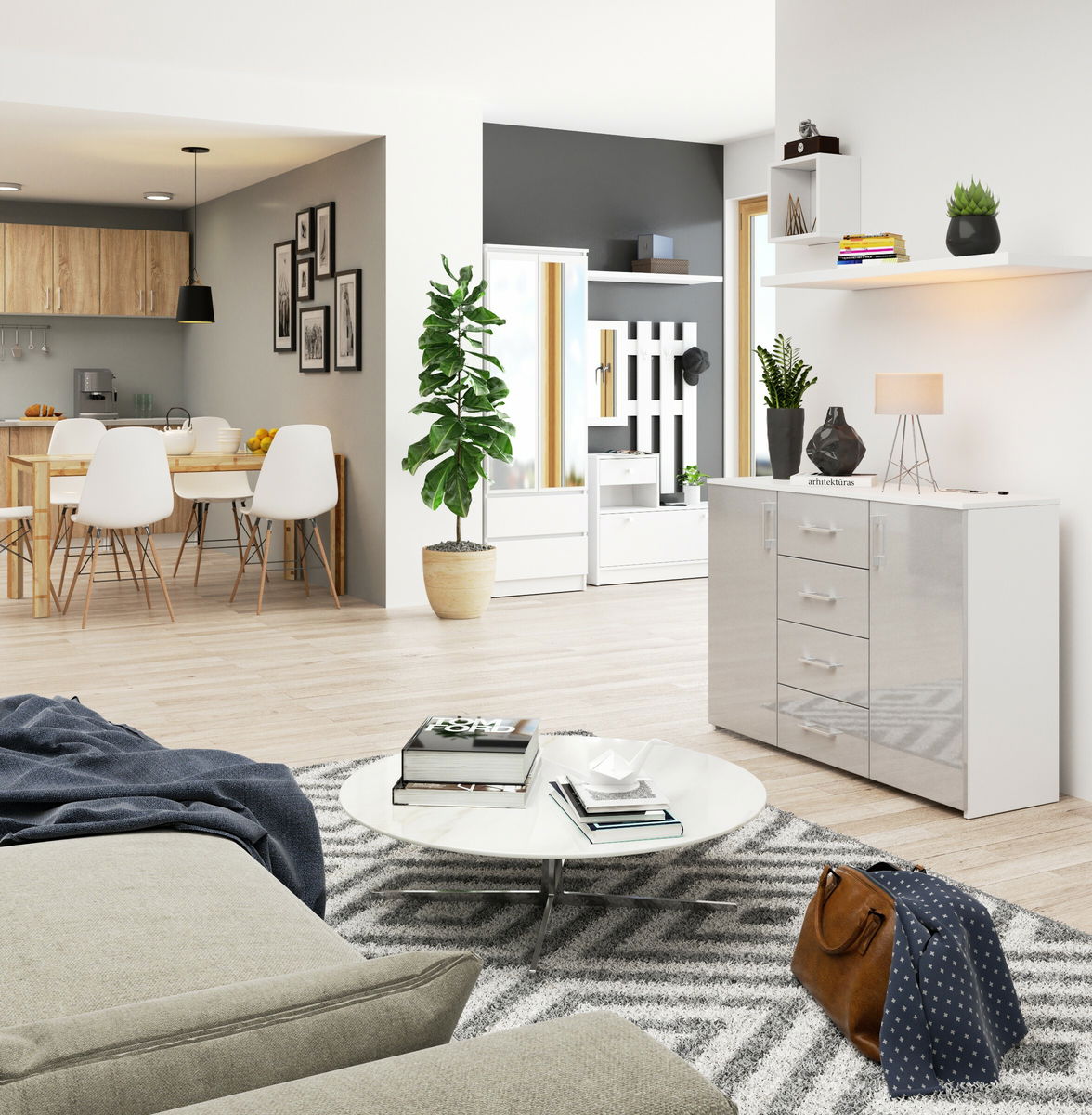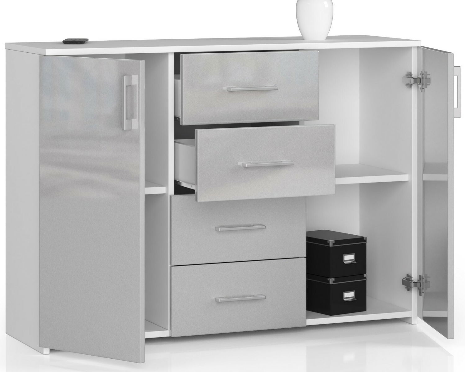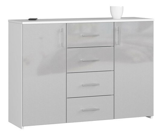 ZobrazitKomoda Kiran, kterou Vám s radostí představujeme, je nábytkový díl se 4 prostornými šuplíky a 2 dvířky, vyrobený z kvalitního materiálu, jakým je laminovaná deska o tloušťce 16 mm. Zásuvky se pohybují na kovových válečkových vodítkách a hrany nábytku jsou pokryty ABS lemováním, které poskytují dobrou ochranu před poškozením. Úchytky komody Kiran jsou stříbrné barvy. Zajímavá komoda v nadčasových barvách si jistě najde oblibu u všech zákazníků, které pozitivně překvapí atraktivní cena a mimořádná funkčnost.