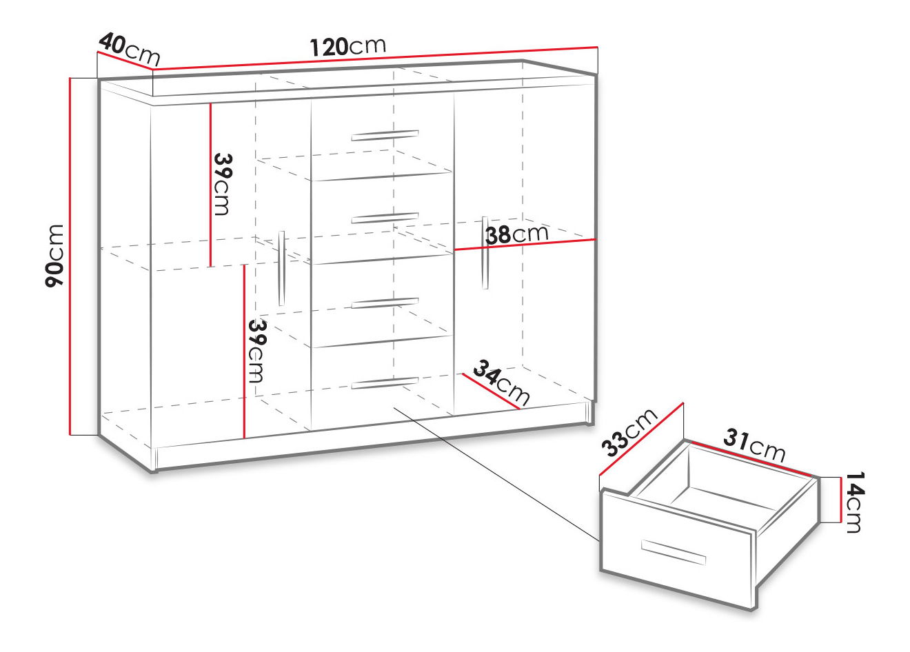ZobrazitKomoda je ideální volbou pro ty, kteří hledají pohodlí a styl. Moderní komoda Kler K2D4SZ KE01 je více než praktickým kusem nábytku do obývacího pokoje, ložnice a chodby. Zaujme jednoduchým a příjemným designem a do místnosti vnáší atmosféru harmonie a míru. Stylová a elegantní komoda má mnoho praktických úložných prostor. Pro menší doplňky je v centru komody spousta prostorných zásuvek. Rozměry: šířka: 120 cm, výška: 90 cm, hloubka: 40 cm Barvy: možnost výběru barev zde Vyrobeno: horní deska o tloušťce 22 mm, korpus deska 16 mm, doplněk v předním čele: 12 mm, v zásuvkách jsou vodící lišty plastové, úchyty 16 mm, horní deska stolu silná deska 22 mm, dveřní vložky, deska tloušťka 12 mm, válečková vodítka v zásuvkách, plastové rukojeti, ABS lemování Rozměry produktu jsou uvedeny v centimetrech a mohou se lišit od skutečných rozměrů o ± 3 cm. Rozměry nábytku na přání zákazníků neměníme Záruční doba: 24 měsíců