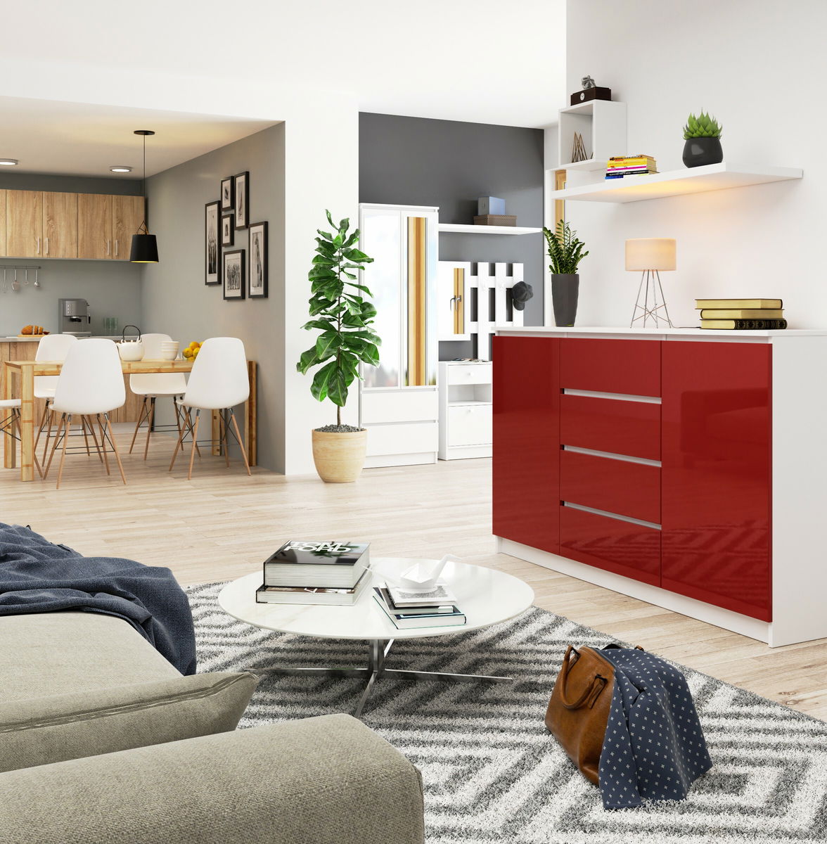 Komoda Koa (červený lesk)