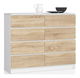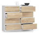 Velmi prostorná komoda Kohen v nadčasovém provedení je zajímavou nabídkou, kterou lze s úspěchem využít v kancelářských, ale i bytových prostorách, jako jsou ložnice, obývací pokoje nebo haly. Nábytek je vyroben z kvalitní laminované desky o tloušťce 16 mm. Tento materiál je vysoce odolný vůči poškození, díky čemuž je komoda atraktivní i po delší době používání. Moderní komody se vyznačují jednoduchostí a elegancí. Díky komodě Kohen bude možné v dané místnosti uložit spoustu potřebných věcí. Nábytek se skládá ze 6 prostorných zásuvek, které se pohybují na kovových válečkových vodítkách. Hrany pokryté ABS lemováním zajišťují vysokou ochranu proti poškození. Dostupná ve více barevných provedeních.