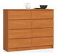 Velmi prostorná komoda Kohen v nadčasovém provedení je zajímavou nabídkou, kterou lze s úspěchem využít v kancelářských, ale i bytových prostorách, jako jsou ložnice, obývací pokoje nebo haly. Nábytek je vyroben z kvalitní laminované desky o tloušťce 16 mm. Tento materiál je vysoce odolný vůči poškození, díky čemuž je komoda atraktivní i po delší době používání. Moderní komody se vyznačují jednoduchostí a elegancí. Díky komodě Kohen bude možné v dané místnosti uložit spoustu potřebných věcí. Nábytek se skládá ze 6 prostorných zásuvek, které se pohybují na kovových válečkových vodítkách. Hrany pokryté ABS lemováním zajišťují vysokou ochranu proti poškození. Dostupná ve více barevných provedeních.
