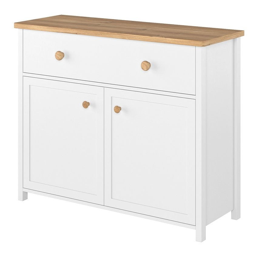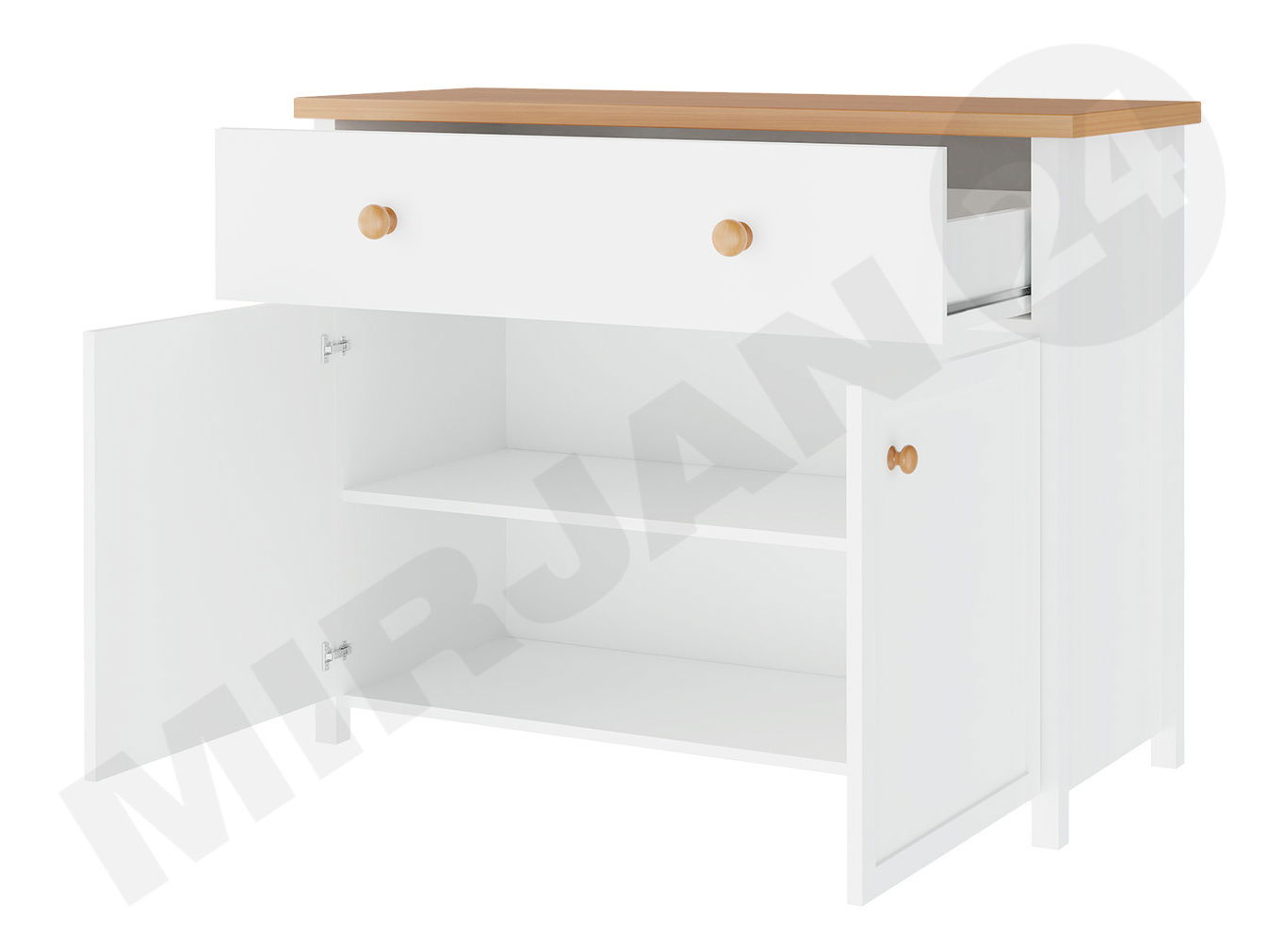 ZobrazitKomoda je ideální volbou pro ty, kteří hledají pohodlí a styl. Bílá komoda 2D1S Kos KS-05 poskytuje další prostor pro uložení bytových doplňků nebo oblečení. Komoda je vybavena velkou zásuvkou a vysokou skříňkou. Komoda vděčí za svůj okouzlující vzhled kombinaci bílé barvy s dřevěným motivem, čímž vytváří harmonické duo. Dekorativním akcentem nábytku jsou jemné, kulaté kliky. Nábytek je ideální do obývacího pokoje nebo dětského pokoje. Komodu můžete kombinovat s dalšími prvky z této kolekce. Rozměry: šířka: 110 cm, výška: 90 cm, hloubka: 42 cm Barvy: možnost výběru barev zde Vyrobeno: korpus a dvířka: laminovaná dřevotřísková deska, hranovací páska papírová zadní stěna je z dřevovláknitých HDF desek 3mm, závěsy kovové, plastové ložisková, typ podložky : protiskluzová podložka, Rozměry výrobku jsou uvedeny v centimetrech a mohou se lišit od skutečných o ± 3 cm. Rozměry nábytku neměníme na přání zákazníka Záruční doba: 24 měsíců