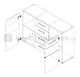 Třídílná komoda uprostřed se čtyřmi zásuvkami a úložným prostorem s poličkou po stranách.