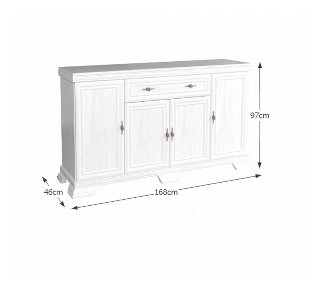 Široká masivní komoda Kraz má čtyři dvířka a jednu zásuvku. Zařídíte si s ní obývací pokoje, ložnice, jídelny nebo pracovny. Vhodná pro ty, kteří inklinují k rustikálnímu stylu domácností. Barevné provedení sosna andersen podtrhuje eleganci této komody.