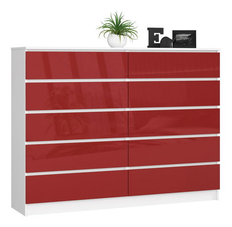Komoda Kurtinaitis 10SZ (bílá + lesk červený)