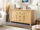 Komoda v nadčasovém designu, která svými jednoduchými liniemi a teplým tónem dřevěného provedení jistě doplní každý bytový dekor. Obsahuje dvě uzavřené skříňky a tři zásuvky s krásnými kovovými úchyty a poskytuje dostatek úložného prostoru. Díky svému klasickému vzhledu bude dokonalým doplňkem každého obývacího pokoje nebo ložnice.