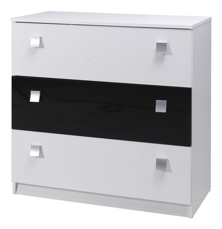 Komoda Laurenia (černá) o výšce 88 cm a hloubce 40 cm je elegantní kus nábytku, který zaručeně zkrášlí váš interiér. Je vyrobena z kvalitního materiálu a má moderní bílý a černý lesk, který dodá pokoji sofistikovaný vzhled. Komoda má dostatek úložného prostoru, díky čemuž je skvělá pro skladování oblečení, prádla nebo jiných věcí. Má čtyři velké zásuvky, které jsou snadno ovladatelné, takže získáte rychlý přístup k věcem, které potřebujete. Komoda je snadná pro údržbu a velmi stabilní, takže ji můžete používat po mnoho let. Je to skvělá investice pro každého, kdo hledá kvalitní nábytek za přijatelnou cenu.