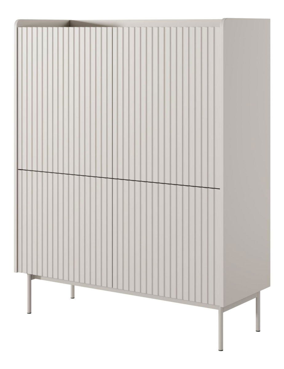 Komoda Lemenn I (béžová) nabízí moderní design a praktické funkce. Je vyrobena z laminované dřevotřísky, s MDF tloušťkou 16 mm po stranách a 18 mm na přední části, což zaručuje její pevnost a odolnost. Otevírání probíhá bez úchytek, pomocí systému stlačení, což dodává komodě čistý a minimalistický vzhled. Kovové nožičky v béžové barvě poskytují stabilitu a styl. Tato komoda je ideálním řešením pro moderní interiér.