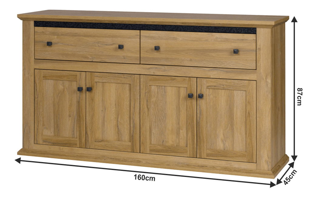 Komoda Leoras MZ10 je ideálním doplňkem do každé moderní domácnosti. Výrobek nabízí stylový a elegantní design s dub grand barvou, což zajišťuje perfektní sloučení s každým interiérem. Materiál, ze kterého je vyrobena komoda, je DTD laminována s ABS hranami, a je velmi kvalitní a odolný. S rozmoři 160x45x87 cm a tloušťkou materiálu 40 mm, poskytuje dostatek místa pro uskladnění věcí. Komoda má čtyři skříňky a šuplíky, které nabízejí dostatek úložného prostoru. Kovové úchyty s 3D efektem dodávají komodě elegantní a moderní vzhled. Produkt se dodává v demontu, což zajišťuje jednoduchou montáž. Komoda Leoras MZ10 je dokonalou volbou pro ty, kdo si chtějí vytvořit elegantní interiér, ale zároveň potřebují dostatek prostoru pro uskladnění věcí.