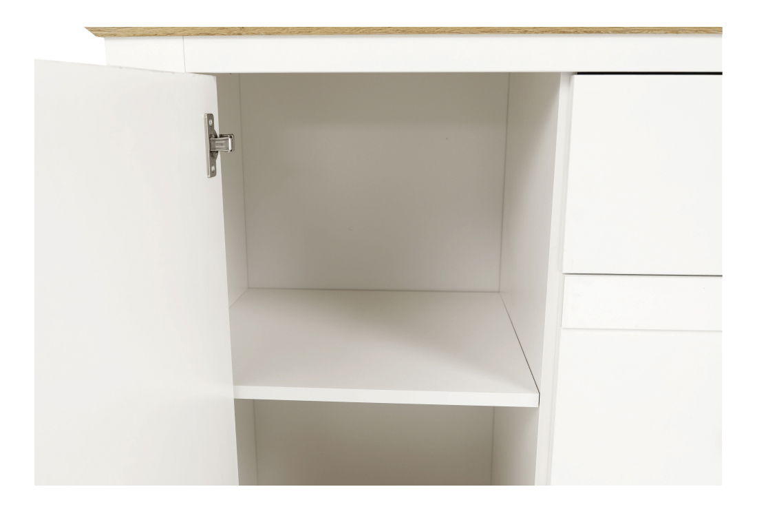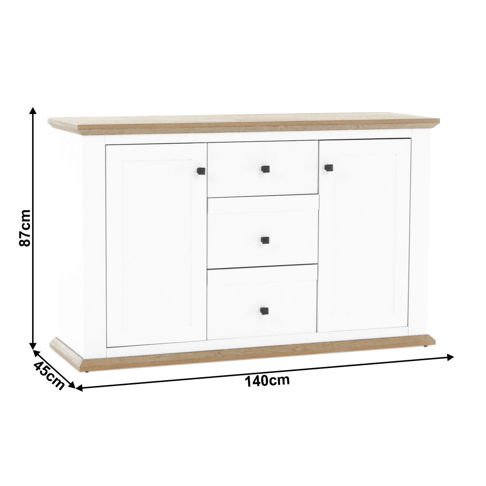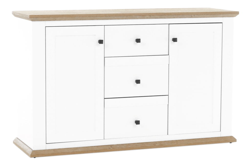 Komoda Leoras MZ11 je praktickým a stylovým řešením pro váš domov. Výrobek má rozměr 140x45x87 cm, výška 87 cm a hloubka 45 cm. Komoda je vyrobena z DTD laminovaného materiálu s ABS hranami a kombinuje bílou a dub grand barvu. Materiál má tloušťku 40 mm, což zajišťuje pevnost a odolnost. Komoda má dvě dvoudveřové skříňky a tři šuplíky, které nabízejí dostatek úložného prostoru. Kovové úchyty dodávají produktu moderní vzhled. Komoda má také 3D efekt, který dodává prostoru hloubku. Výrobek se dodává v demontu, ale jeho montáž je jednoduchá a rychlá. Komoda Leoras MZ11 je ideální volbou pro každého, kdo hledá kvalitní a stylový nábytek do svého domova.