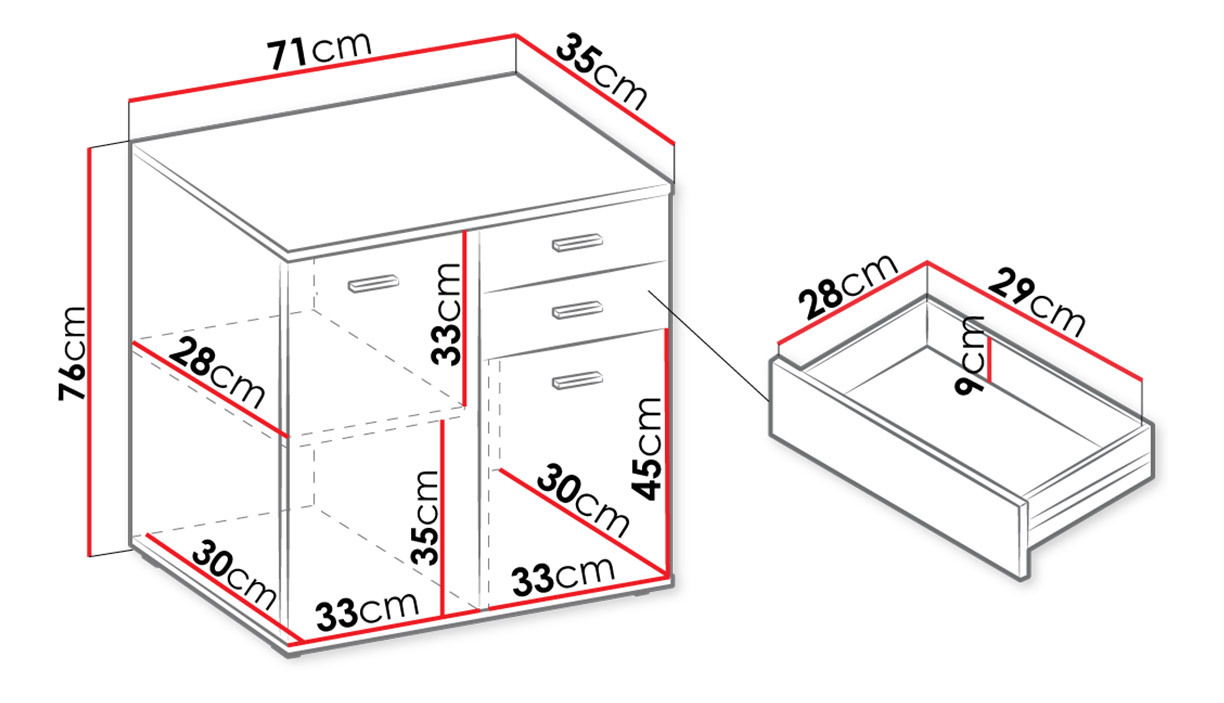 ZobrazitKomoda Lerga 2 2T 2S se zásuvkami bude ideální do každé místnosti. V obývacím pokoji na ní vystavíte své oblíbené fotografie a uložíte do něj své dokumenty. Na chodbě lze použít k uložení kabelek, batohů a menších věcí, jako jsou rukavice. V ložnici bude naopak perfektní jako skříňka na prádlo. Výhodou komody je, že interiér je rozdělen na prostorné police a praktické šuplíky. Kromě toho je komoda vyrobena z kvalitních komponentů a v zásuvkách jsou nainstalovány šoupátka na kuličkových ložiskách. Dekorativním prvkem jsou jemné rukojeti vyrobené z plastu.
