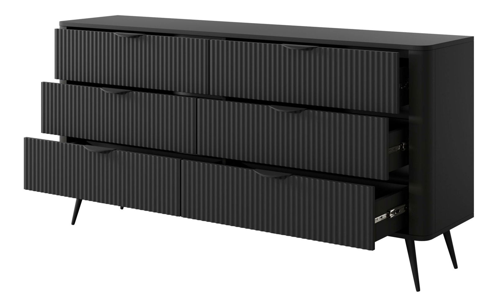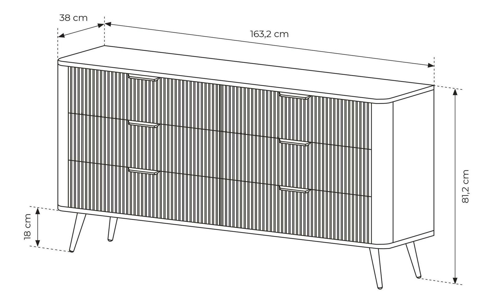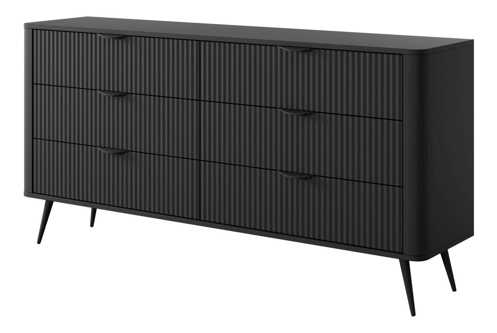 Komoda Lethe I (čierna) je štýlovým a praktickým doplnkom vášho interiéru. Vyrobená z laminovanej drevotriesky, s MDF hrúbkou 16 mm po stranách a 18 mm na prednej časti, zaručuje pevnosť a odolnosť. Komoda obsahuje 6 zásuviek, ktoré poskytujú dostatok úložného priestoru. Zlaté kovové úchytky a nožičky pridávajú luxusný nádych a stabilitu. Táto komoda kombinuje estetiku a funkčnosť, ideálna pre moderné domácnosti.