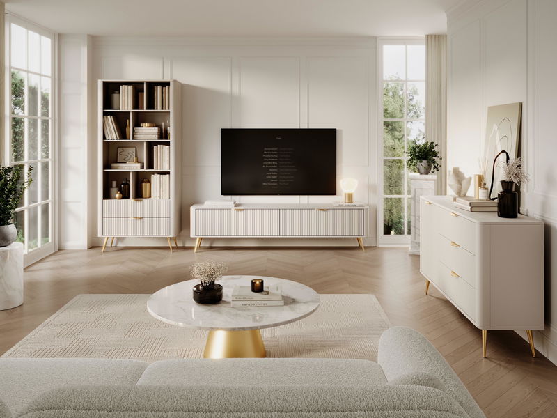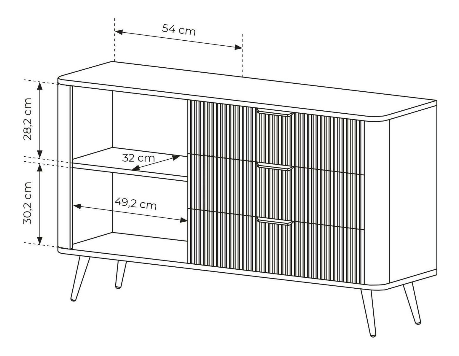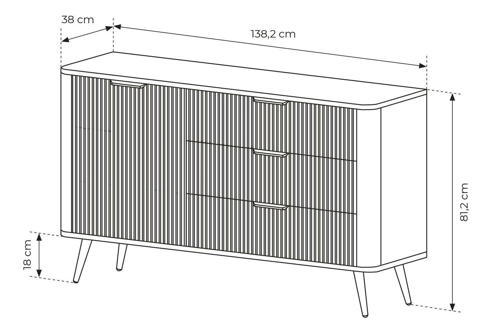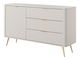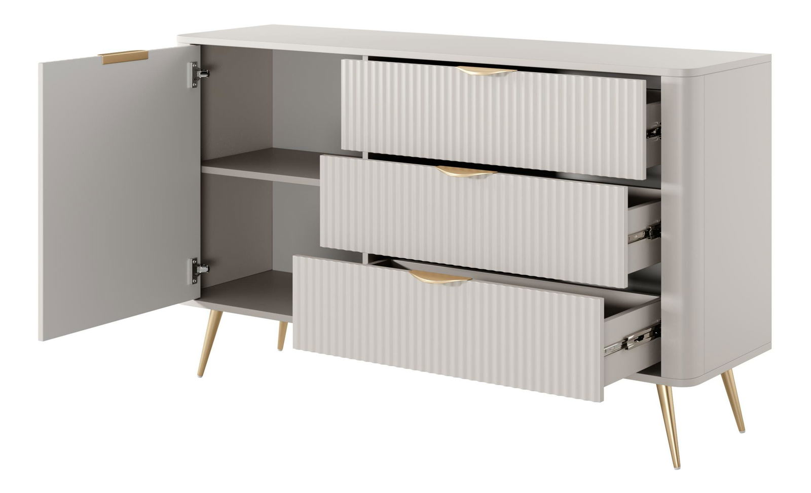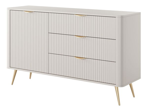 Komoda Lethe III (béžová) je štýlovým a praktickým riešením pre váš interiér. Vyrobená z laminovanej drevotriesky, s MDF hrúbkou 16 mm po stranách a 18 mm na prednej časti, zaručuje pevnosť a odolnosť. Komoda disponuje 3 zásuvkami a 1 dvierkami, ktoré poskytujú dostatok úložného priestoru. Zlaté kovové úchytky a nožičky pridávajú luxusný vzhľad a stabilitu. Táto komoda kombinuje moderný dizajn a funkčnosť, ideálna pre každú domácnosť.