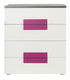 Mladí lidé milují barvy a mnohem více než dospělí a rádi si vybírají pestré odstíny. Rada Lobete je ideálně navržena do studentských a dětských pokojů, vyrobena je z materálu DTD fóliované a dodávána v provedení korpusu v šedé barvě, front (dveří a zásuvek) v bílé barvě a úchytů v odstínu fialové.