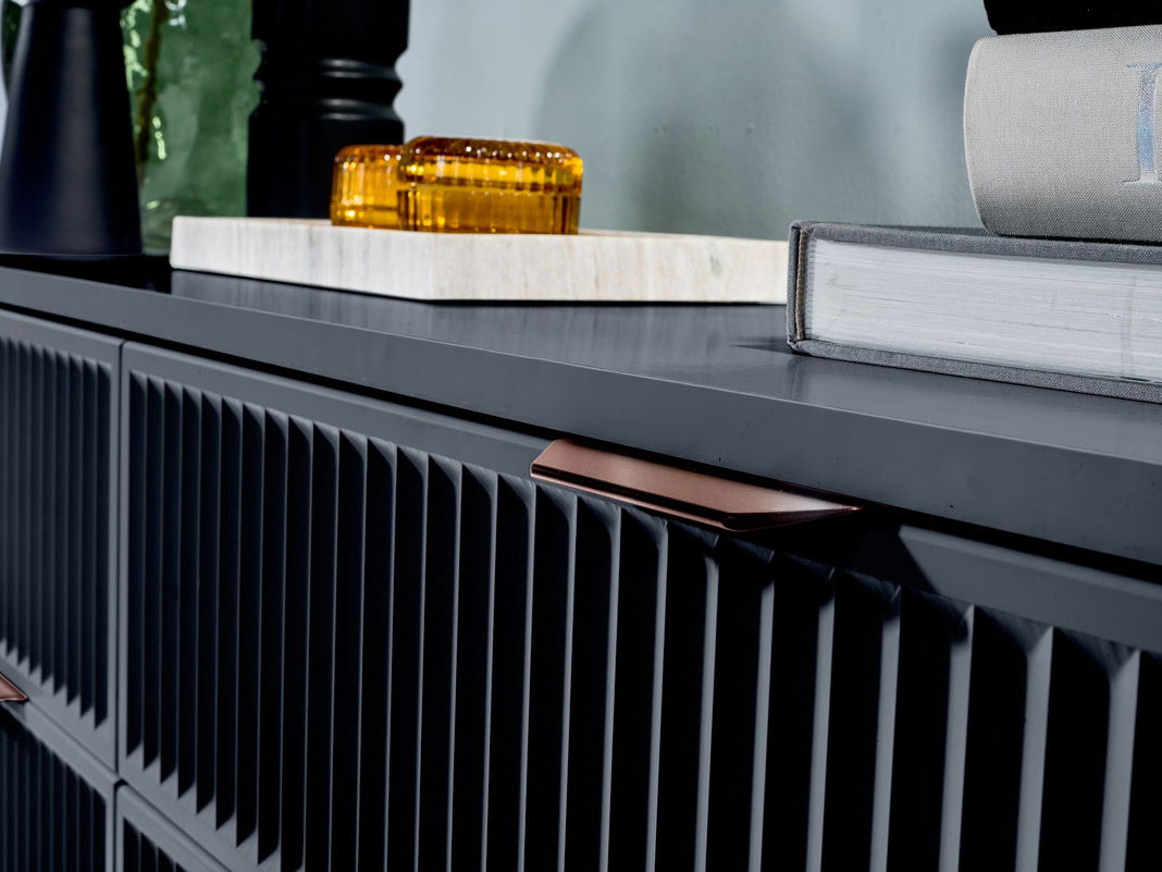 ZobrazitDesignová komoda, která dokonale zapadne do každého obývacího pokoje, jídelny, pracovny či kanceláře. V horní části nábytku naleznete dvě velké zásuvky na oblečení, doplňky, dokumenty, díky čemuž se stává velmi funkční. Ve skříňkách naleznete dvě velké police, které umožní jednoduchou organizaci.