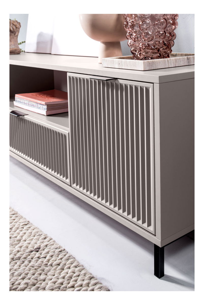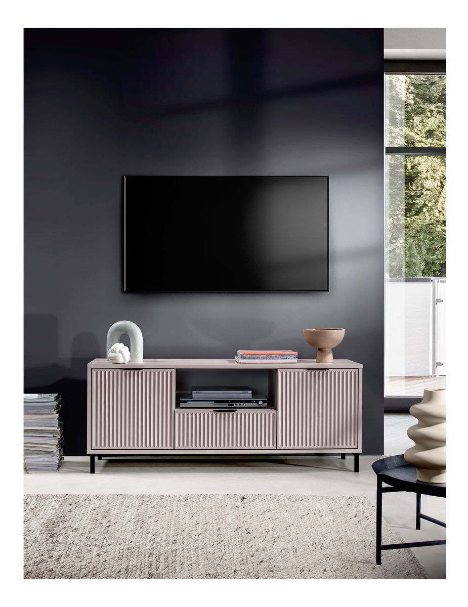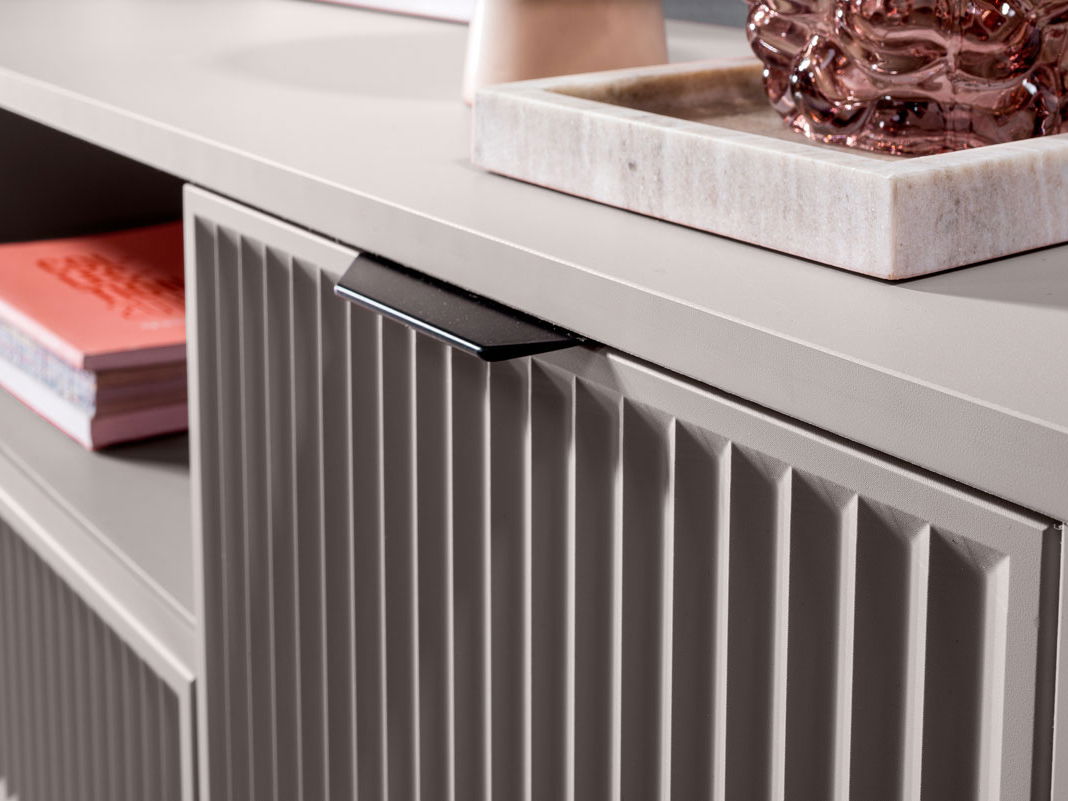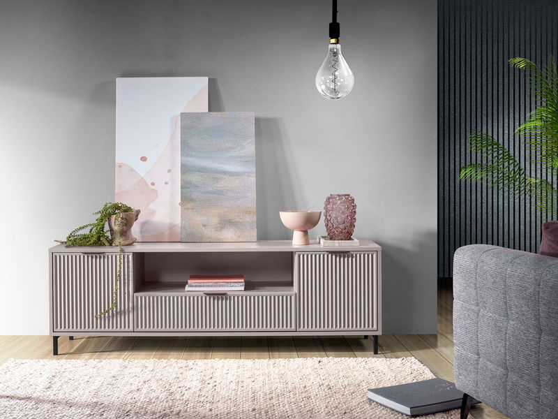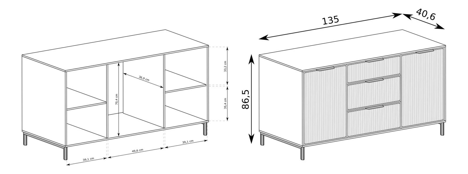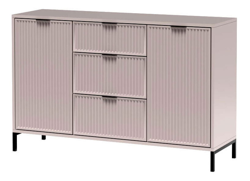 ZobrazitModerní komoda se 3 prostornými zásuvkami uprostřed nábytku a dvěma skříňkami s policí, díky čemuž se stává velmi funkční. Vejde se do ní množství oblečení, doplňků či dokumentů. Její používání je velmi jednoduché a příjemné. Její design přitahuje pozornost.