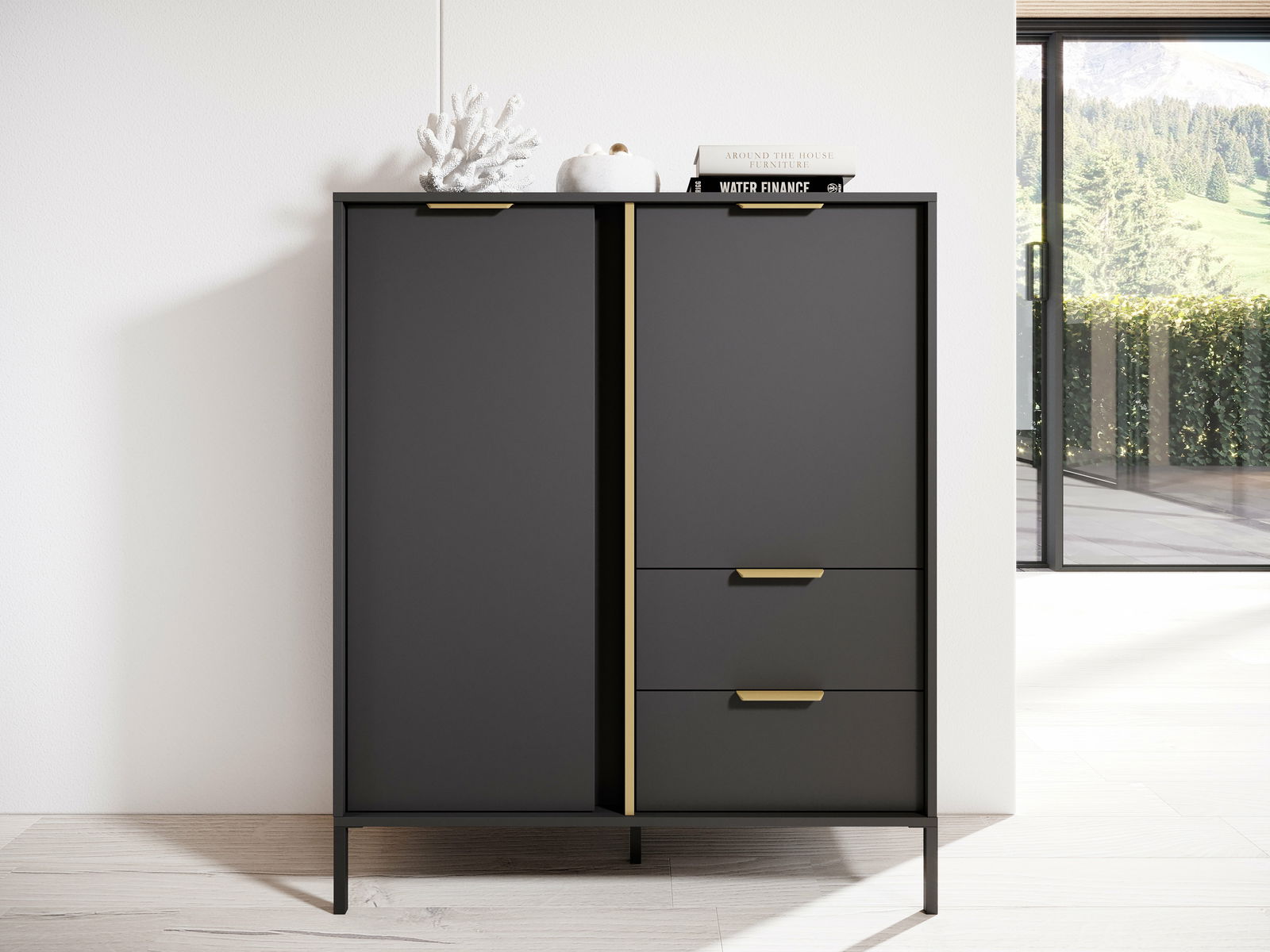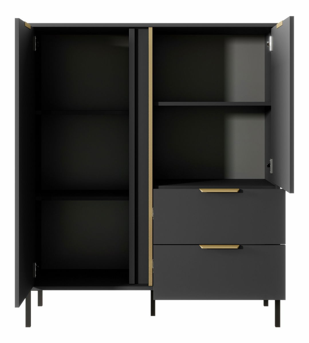 ZobrazitLYRAN je výjimečnou mozaikou vkusu, stylu a elegance, která osloví i ty nejnáročnější zákazníky. Klasická antracitová barva byla obohacena o zlaté ABS lemování na příčce a zlaté úchyty, které nábytku dodávají eleganci a jedinečný styl. S kolekcí LYRAN si snadno zařídíte módní a funkční obývací pokoj.