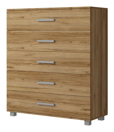 Atraktivní a elegantní nábytek, který jedinečným způsobem vyplní Váš interiér. Prvky z této modelové řady díky modernímu designu a barvě dřeva udělají z Vašeho bytu jedinečné místo. Nábytek je vyroben z laminované desky, která je chráněna 2mm ABS hranou. Tloušťka desky korpusu je 22 mm a front 16 mm. U vitrín je použita stříbrná MDF deska. V postelích je místo roštu s lamelami použita deska.