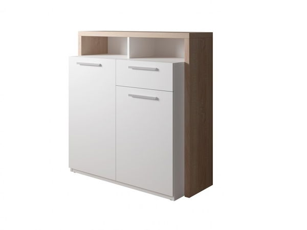 Potřebujete zvětšit úložný prostor v domácnosti? Komoda Mason poskytuje dostatek úložného prostoru v podobě dvířek, jedné zásuvky a dvou otvorů. Komoda má matnou povrchovou úpravu. Nábytek je vyroben z dřevotřískové desky.