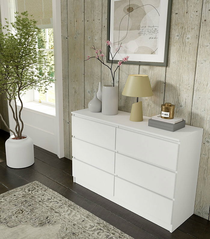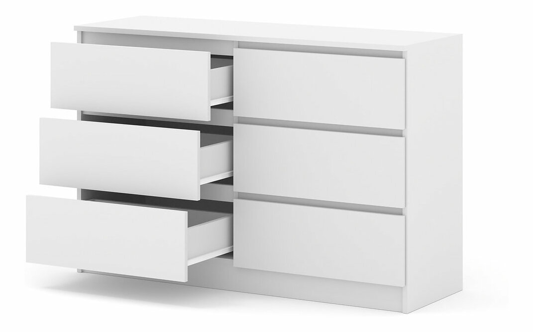 Jednoduchá šestizásuvková komoda vhodná nejen do ložnice, ale také na chodbu. Svým vzhledem zapadne do každé domácnosti. Pojme všechny věci, které potřebujete uložit nebo skrýt před návštěvou.