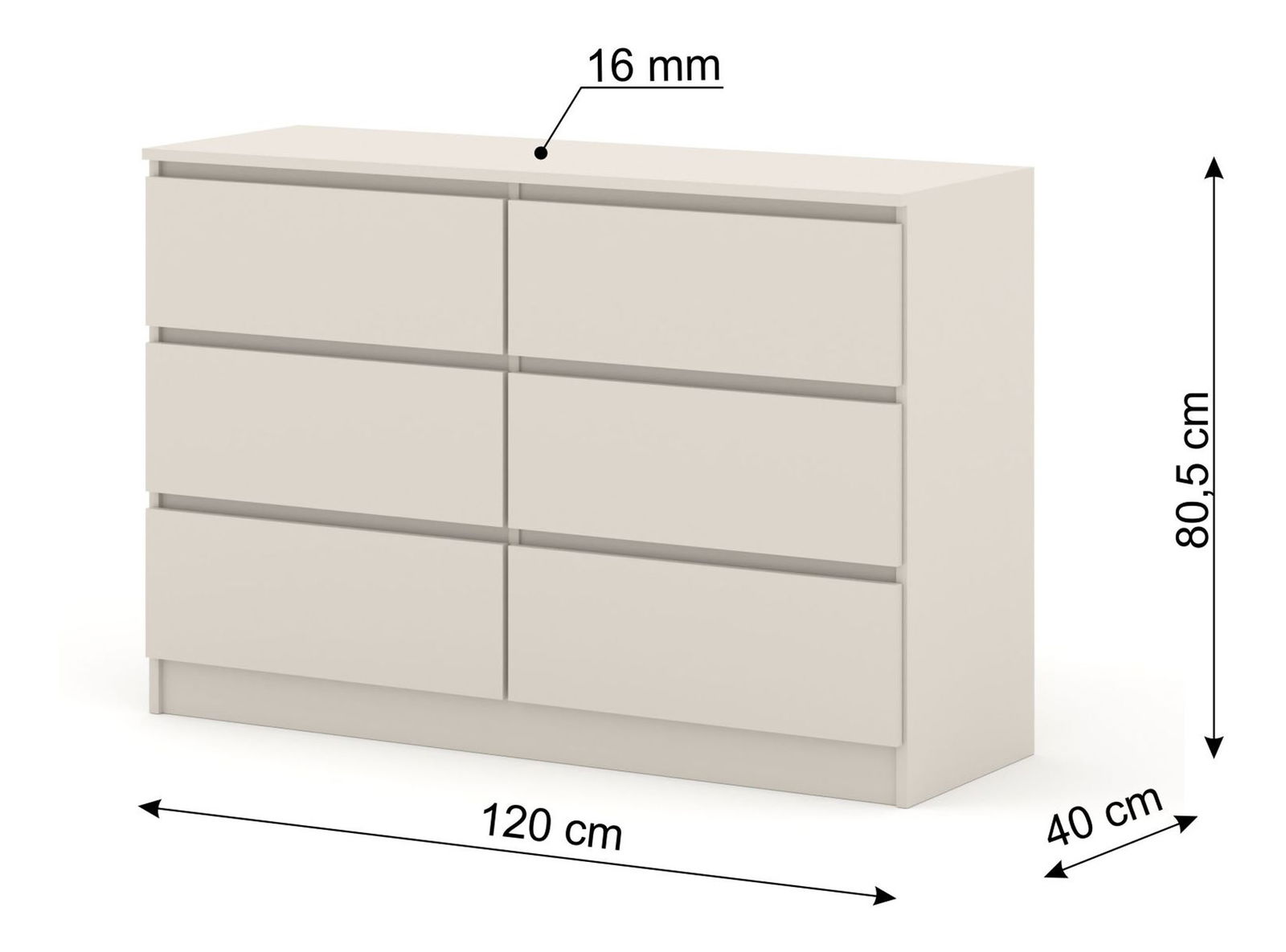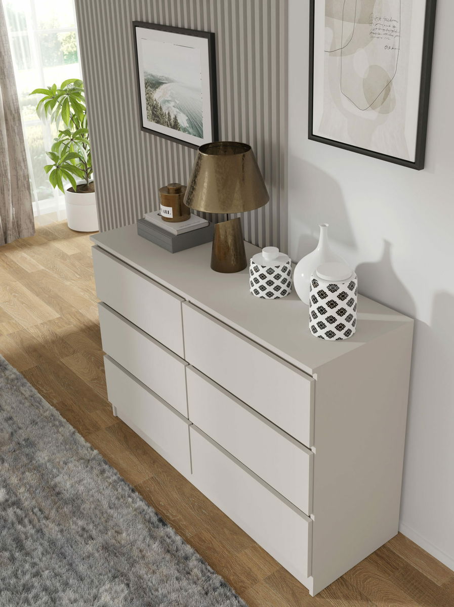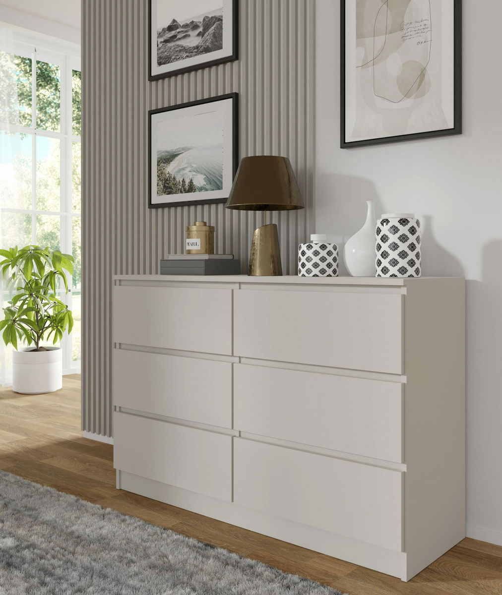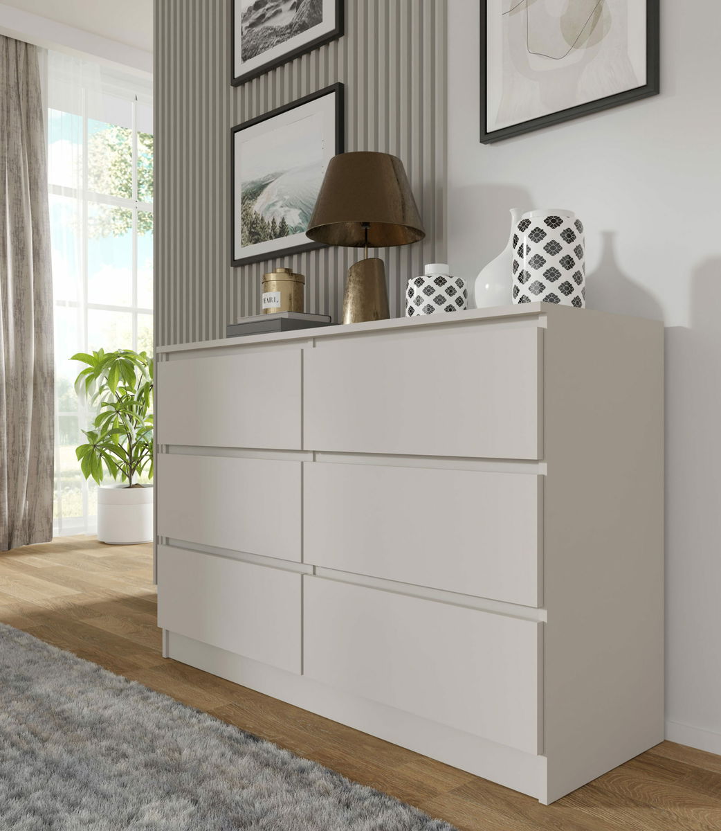 Jednoduchá šestizásuvková komoda vhodná nejen do ložnice, ale také na chodbu. Svým vzhledem zapadne do každé domácnosti. Pojme všechny věci, které potřebujete uložit nebo skrýt před návštěvou.