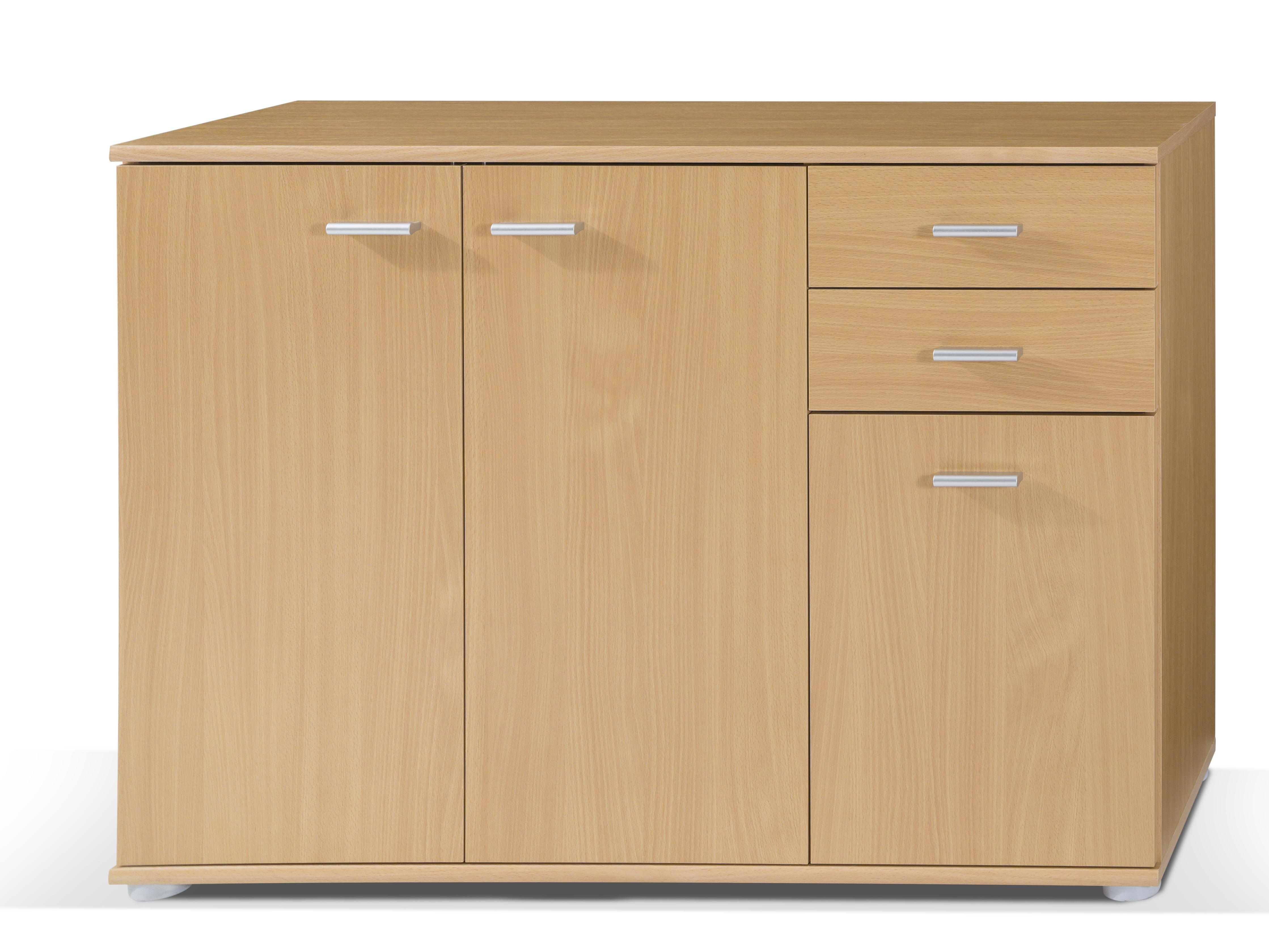 Komoda Milford ze zásuvkami i skříňkami vám pomůže udržovat pořádek a přehledně uložit oblečení i jiné věci potřebné v domácnosti. Komoda je vyrobena z laminovaných desek ve více barevných provedeních.
