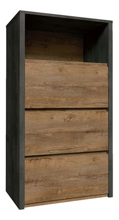 Každý den se musíme popasovat se spoustou problémů, zvládat stresové situace, ale když přijedeme domů, měli bychom úplně vypnout a zahodit všechny starosti za hlavu. K tomu by nám mohl dopomoci sektorový nábytek Miranda, který ze sebe vyzařuje harmonii a dobrou náladu. Je vhodný zejména pro zařízení obývacích pokojů, jídelen, ložnic nebo pracoven. Základ materiálu, ze kterého je nábytek vyroben, tvoří DTD laminovaná. Cizí mu nejsou ani ABS hrany, které se používají k ukončení nábytkového dílce. Sektor Miranda nabízíme v barevném provedení smooth šedý/dub lefkas tmavý. Ohromí vás vzor dřeva a prolínání několika odstínů hnědé. Komoda Miranda KS3 je se třemi šuplíky a otevřeným úložným prostorem. Ohromujícím způsobem působí moderní design bez úchytek.