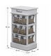 Zařiďte si vaše domácnosti v rustikálním stylu, který je stále populárnější. Tato komoda má pevný dřevěný rám a tři krásné proutěné košíky ozdobené mašličkou a s pruhovým potahem. Bude krásným doplňkem ve vašich předsíních, ložnicích, obývacích pokojích nebo koupelnách. Barevné provedení komody je bílá barva v kombinaci s šedou.