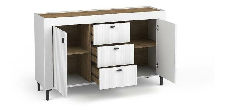 Komoda Mossana MO6 (bílá) je vynikajícím způsobem, jak vašemu domovu dodat trochu stylu. Tato komoda je vyrobena z laminované desky s povrchovým zpracováním v bílé barvě, které krásně dotváří minimalistický nádech komody. Její výška dosahuje 83,6 cm a hloubka je 39,8 cm, což z ní činí ideální řešení pro ukládání různých věcí v obývacím pokoji, ložnici nebo předsíni. Komoda má tři zásuvky a dvojici dvířek, takže umožňuje praktické uspořádání věcí a tím udržují váš interiér čistý a upravený. S Komodou Mossana MO6 (bílá) si do svého domova přidáte designový kousek a zároveň užitečný a krásný nábytek.