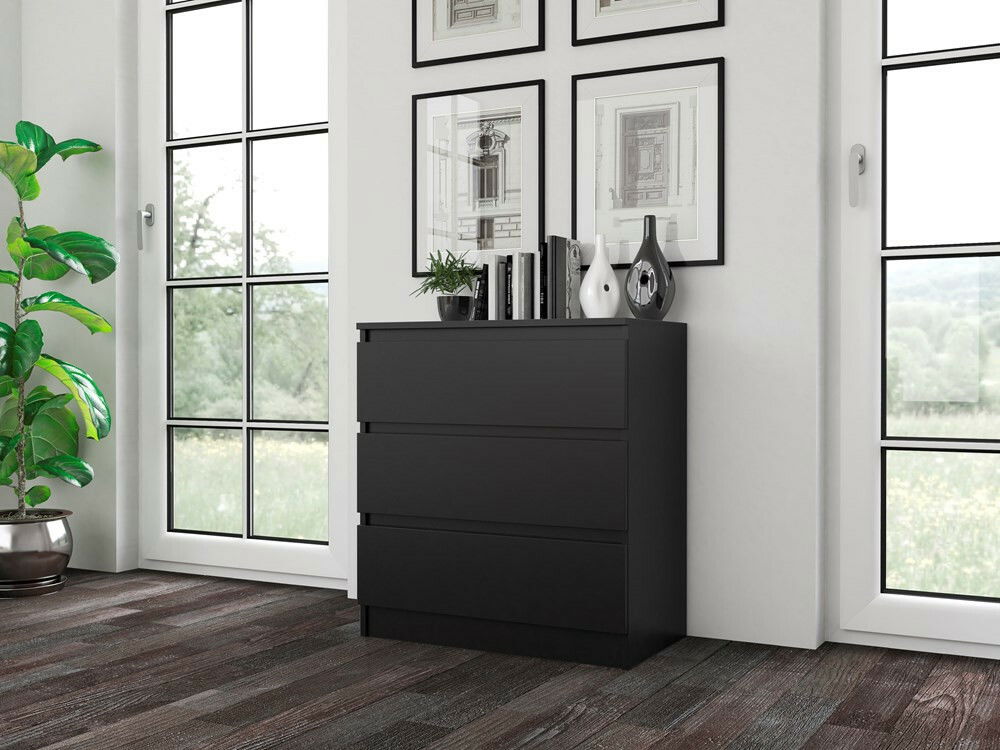 ZobrazitKomoda Musecalo 1 v elegantní černé barvě je ideálním řešením pro moderní interiéry, ať už do ložnice, obývacího pokoje nebo dětského pokoje. S minimalistickou konstrukcí a bezúchytkovými frontami zásuvek poskytuje nejen praktický úložný prostor, ale také stylový vzhled, který osloví každého, kdo ocení kombinaci jednoduchosti a elegance. Vyrobená z kvalitní laminované dřevotřísky, tato komoda zaručuje dlouhou životnost a bezpečné používání, přičemž zásuvky na válečkových vodítkách se zámkem proti vysunutí zajišťují pohodlný přístup k obsahu.
