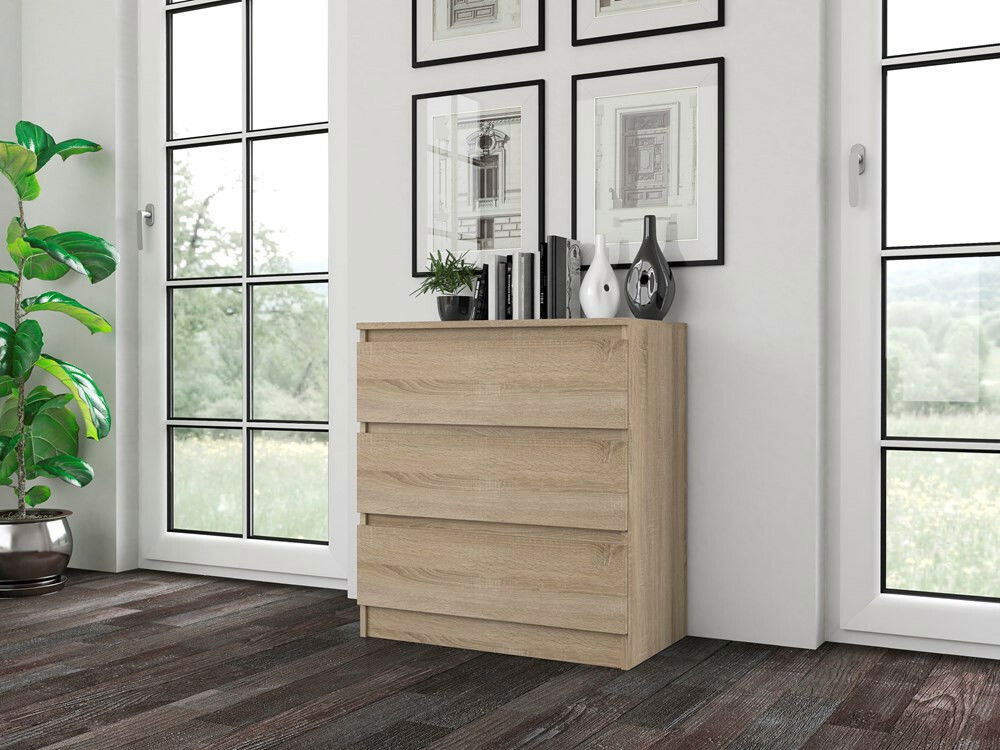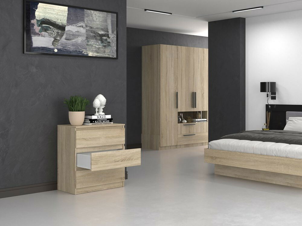 ZobrazitKomoda Musecalo 1 v elegantní barvě dub sonoma je ideálním řešením pro moderní interiéry, ať už do ložnice, obývacího pokoje nebo dětského pokoje. Její minimalistická konstrukce bezúchytkových front nejen zjednodušuje každodenní používání, ale také dodává prostoru sofistikovaný vzhled. Vyrobená z kvalitní laminované dřevotřísky, tato komoda nabízí tři prostorné zásuvky pro bezpečné a pohodlné uskladnění vašich věcí. S důrazem na detail a funkčnost se stane skvělým doplňkem vašeho domova.