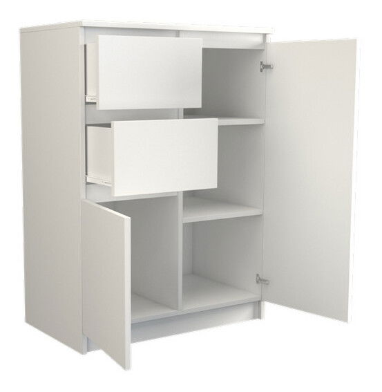 ZobrazitKomoda Musecalo 10 v elegantní bílé barvě je ideálním řešením pro moderní interiéry, ať už do ložnice, obývacího pokoje nebo dětského pokoje. S minimalistickým designem a bezúchytkovými frontami nabízí nejen stylový vzhled, ale také praktičnost. Je vybavena dvěma dveřmi a dvěma šuplíky, které poskytují dostatek úložného prostoru pro vaše věci. Kvalitní laminovaná deska a ABS hrany zajišťují vysokou odolnost a dlouhou životnost. S touto komodou si usnadníte organizaci a dodáte svému domovu nádech elegance.