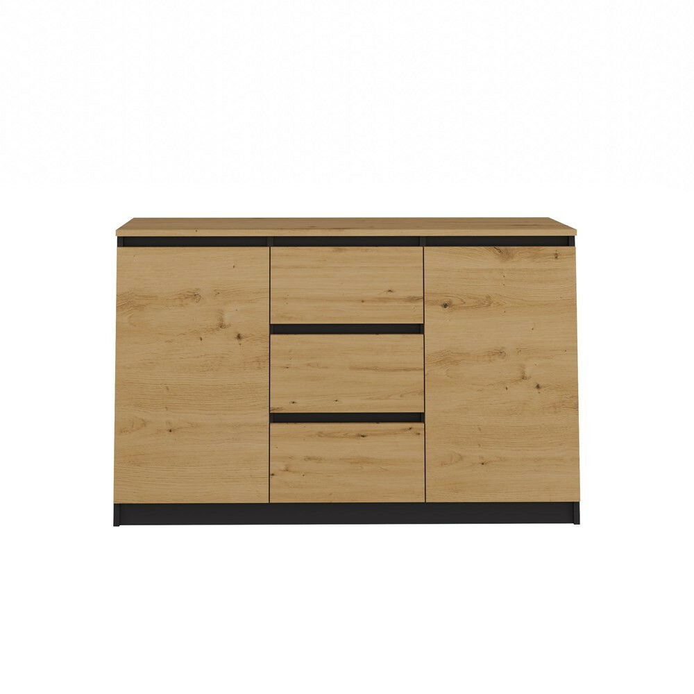 Komoda Musecalo 11 je moderní a praktický nábytek, který skvěle doplní interiér vaší ložnice, obývacího pokoje nebo dětského pokoje. S rozměry 120 cm na šířku a 75 cm na výšku nabízí dostatek úložného prostoru v podobě dvou dveří a tří zásuvek, přičemž minimalistická konstrukce bezúchytkových front zajišťuje pohodlné používání. Vyrobená z kvalitní laminované dřevotřísky s odolnými PVC hranami, komoda v elegantní kombinaci dub artisan a antracit je nejen esteticky příjemná, ale také funkční. Tento kus nábytku je ideálním řešením pro ty, kdo hledají spojení stylu a praktičnosti.