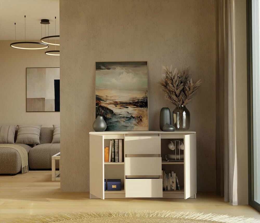 ZobrazitKomoda Musecalo 11 v elegantní barvě kašmír je ideálním řešením pro moderní interiéry, kde se potýká funkčnost s estetikou. S minimalistickou konstrukcí a bezúchytovými frontami nabízí praktické úložné řešení se dvěma dveřmi a třemi prostornými zásuvkami, které usnadňují organizaci vašich věcí. Vyrobená z kvalitní laminované dřevotřísky, je odolná vůči poškrábání a vlhkosti, což zaručuje její dlouhou životnost. Komoda Musecalo 11 se skvěle hodí do ložnice, obývacího pokoje či dětského pokoje, přičemž její nadčasový design obohatí každý prostor.